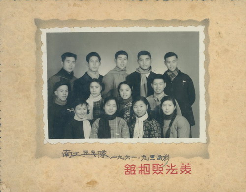 南京工学院乒乓球队全体成员留影(第三排:左一为王家骏,右一为顾冠群)
