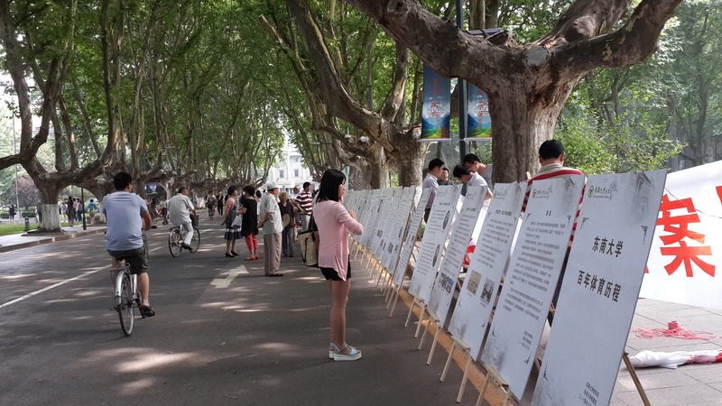 在四牌楼校区中央大道的展出的《beplay体育app官方下百年体育历程》,共有27块展板,吸引了众多师生,得到有关方面好评。
