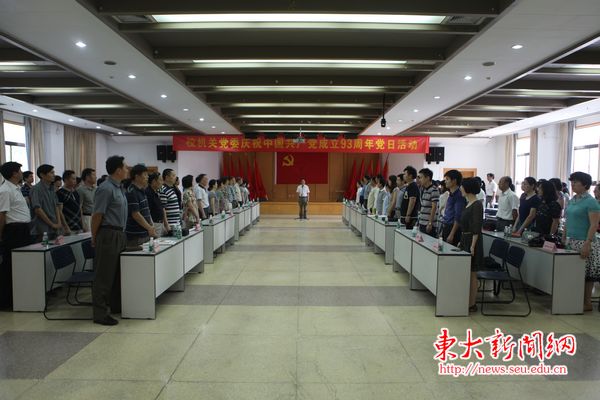 6月19日下午,beplay体育app官方下机关党委在四牌楼校区群贤楼三楼报告厅举行了庆祝中国共产党建党93周年党日活动。档案馆支部书记张魁、受机关党委表彰的优秀党员黄进、张慧慧和过整年政治生日的党员郑姚铭(60年党龄)、代贤安和刘联盟(40年党龄)和杨东(10年党龄)参加了活动。活动由机关党委委员、保卫处处长任祖平主持。