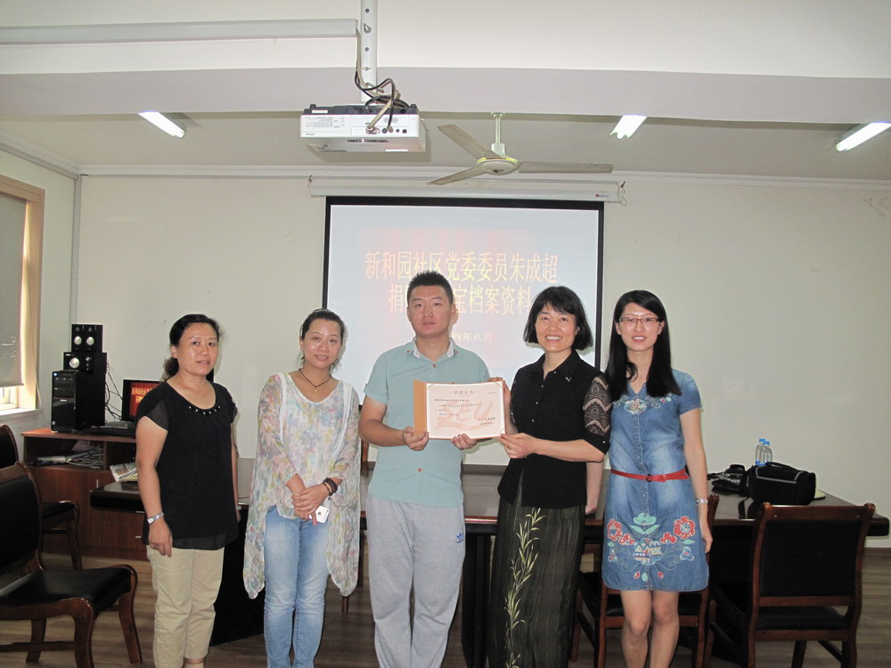2014年8月22日下午,南京新和园社区党委委员朱成超同志向档案馆捐赠了杨廷宝相关资料23件,其中有18份文件、4幅字画、1张照片。
