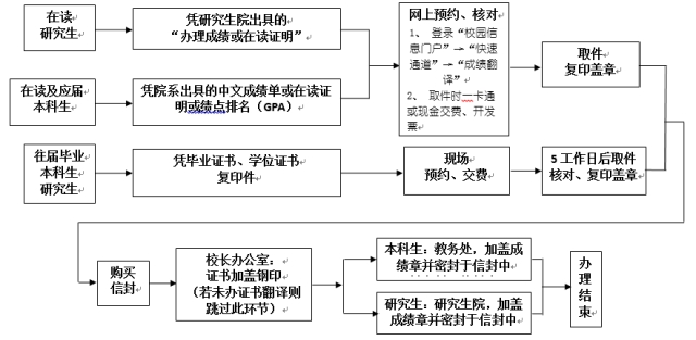 网上预约办理:7*24小时全天候都可以网上预约。(登录“校园信息门户”→“快速通道”→“成绩翻译”) | |||