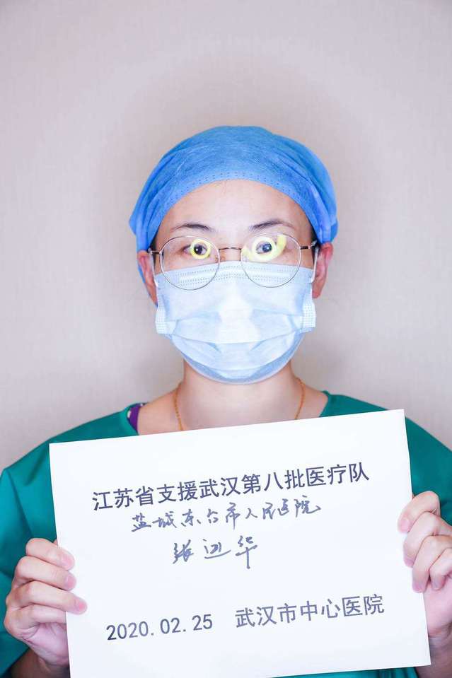 作为江苏省第八批援鄂医疗队队员,她于2020.2.20-2020.3.20在武汉中心后湖院区呼吸与危重症二区参与救援。张进华在进入重症病区工作第一天,便忍着穿着防护装置后的头痛缺氧、手指发麻等各种痛苦,连续工作了6、7个小时,与当地老师完成了交接。援鄂期间的每次上班,她都保持高度紧张,认真处理核对每一条医嘱、每一个账目、每一片药物;护理病人时,为病人认真做好每一项治疗,为危重病人、生活不能自理病人翻身、拍背、更换清洁衣物、排便护理等等,并及时总结经验;她还利用心理咨询师的知识为病人做好个性化的心理护理。张进华坚信并始终践行着,护士的价值就是在病人最困难的时候,用暖心的安慰、美丽的微笑、轻柔的话语,使病人看到希望、看到阳光、看到未来。