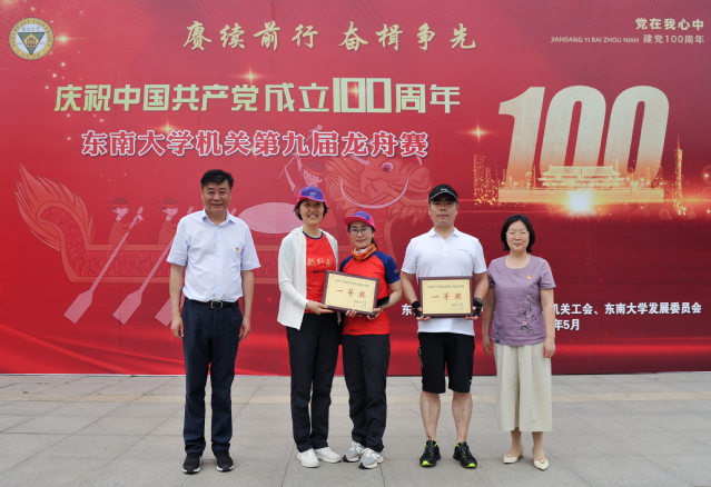 为迎接中国共产党成立100周年、建校119周年,由校机关党委、机关工会、发展委员会联合举办的beplay体育app官方下机关第九届“赓续前行 奋楫争先”龙舟比赛于5月27日下午在玄武湖水上运动中心举行。校党委副书记郑家茂,党委常委、校工会主席李鑫,机关党委书记吴娟以及机关部处相关负责同志出席活动。来自28个机关部门的210名队员组成14支代表队伍参加本次比赛。经过激烈角逐,我馆和保卫处联队以第一名的好成绩荣获一等奖。