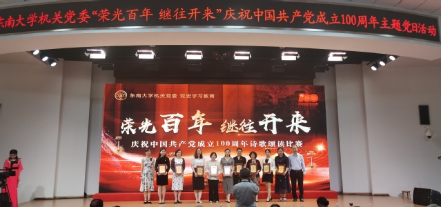 此次党史学习教育主题党日活动还特设了诗歌诵读比赛环节,档案馆、老干部处与保卫处组成的联队荣获三等奖。