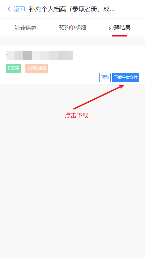 进入预约单详情,点击办理结果进入办理结果文件列表 |