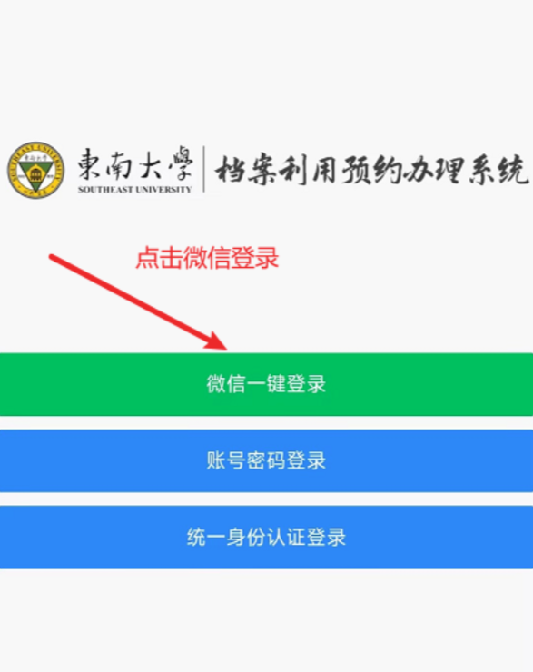 首先登录档案利用远程预约系统网页端(登录地址 https://dayy.seu.edu.cn/ ) |