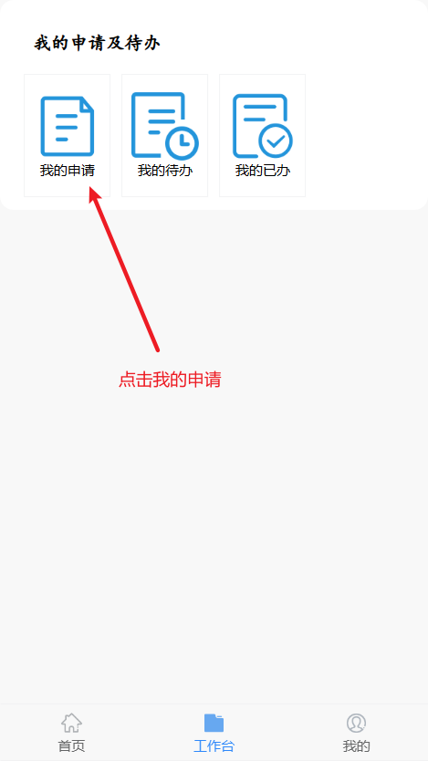 在工作台中,点击我的申请
