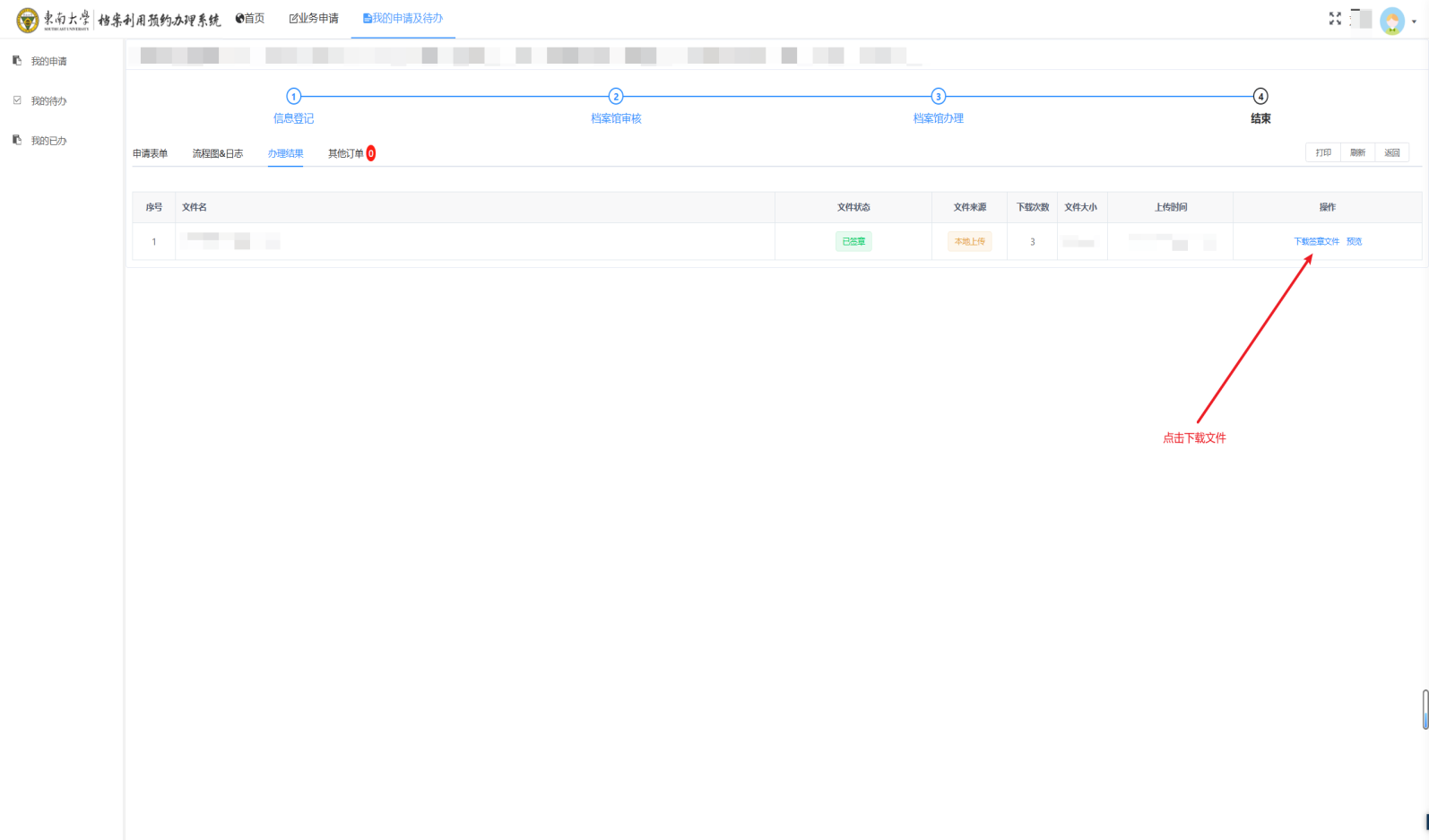 找到对应的办理结果文件进行下载 |
